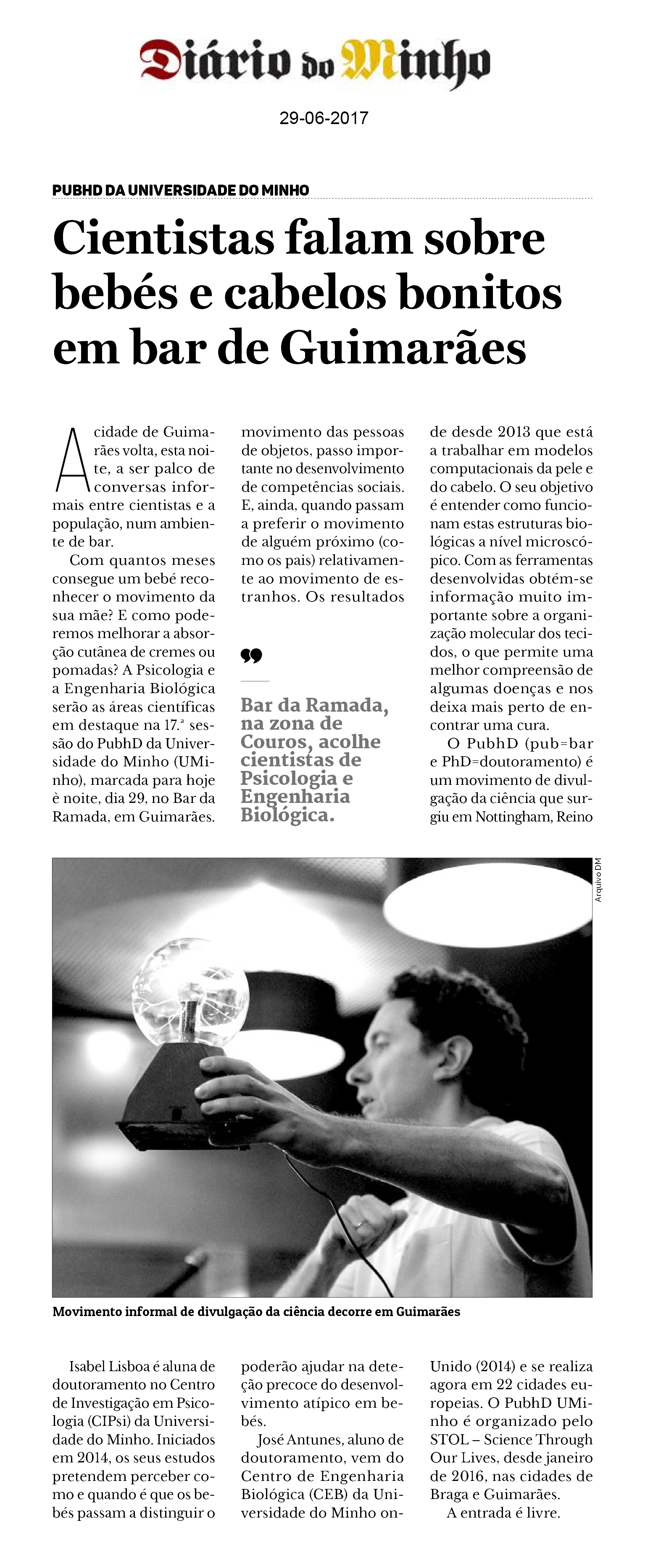 O PubhD (pub=bar e PhD=doutoramento) é um movimento de divulgação da ciência que surgiu em Nottingham, Reino Unido (2014) e se realiza agora em 22 cidades europeias. O PubhD UMinho é organizado pelo STOL – Science Through Our Lives, desde janeiro de 2016, nas cidades de Braga e Guimarães.