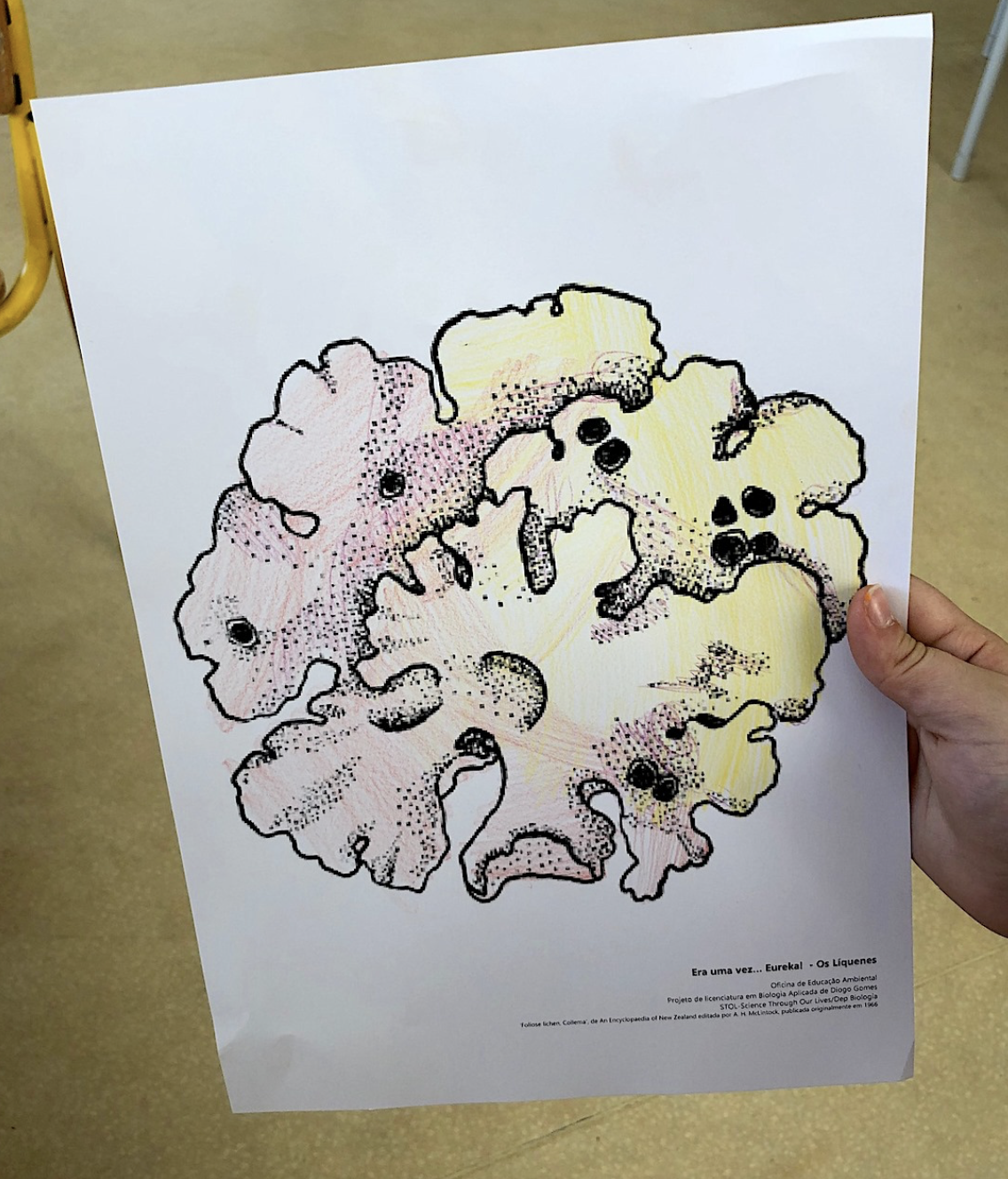 Esta oficina de educação ambiental começa com a narrativa da história inédita Líquenes – Como tudo começou… de Diogo Gomes e prossegue com diversas actividades experimentais, demonstrativas e plásticas que têm como assunto central, os líquenes. Entre outras coisas as crianças poderão observar diferentes espécimes, montar um pantone de líquenes e moldar o seu próprio exemplar em plasticina.